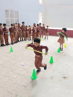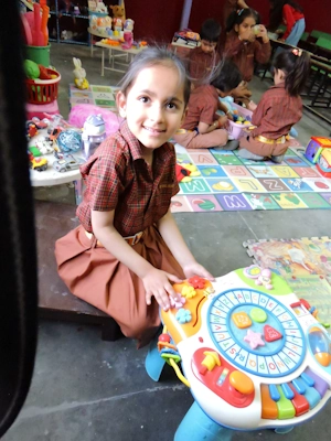 The school puts special emphasis on KG level students. In order to ensure that their golden era is not exhausted by the stress of heavy, loaded bags of study material, our school teachers teach the students by play-way methods with the help of specially structured play-rooms which are well equipped with mechanical and electronic games.